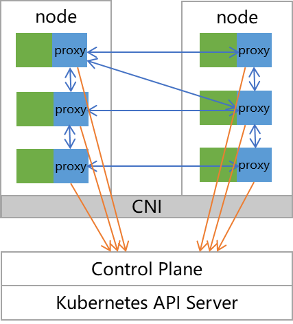 第二种是基于 Istio 的服务网格,它并不需要额外的注册中心组件支持。Istio 接管了 K8s 的网络,通过 Sidecar Proxy 的方式将 Kubernetes 中的流量控制从服务层中抽离出来, Istio 基于 Enovy 的 xDS 协议扩展了其控制平面,每个 Pod 中放入原有的 Kube-proxy 路由转发功能。Istio 具备了流量管理、策略控制、可观察性等特点,将“应用程序”与“网络”解耦,因此不需要额外使用第三方注册中心。